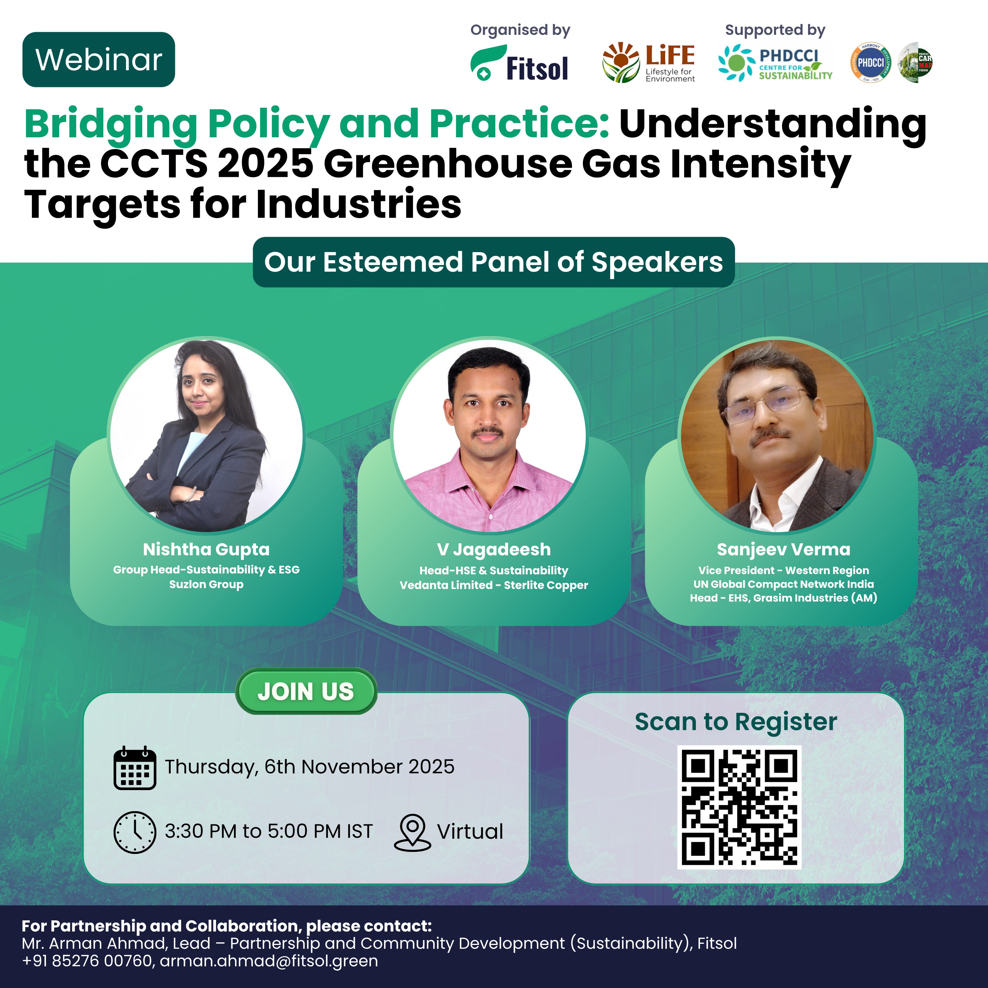 Fitsol, under the LiFE initiative and in collaboration with PHDCCI Centre for Sustainability, invites you to decode CCTS 2025 and its impact on India’s decarbonization journey.